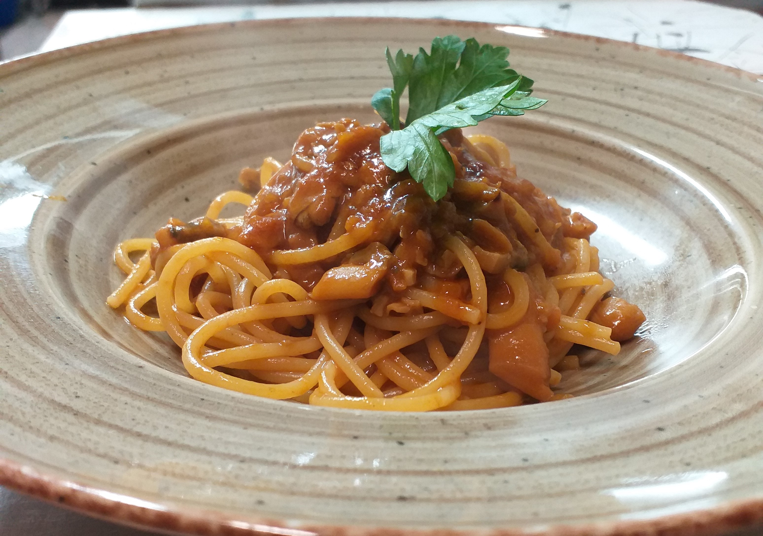 Spaghetti Rummo o Paccheri e Cannolicchi in salsa di pomodoro come prevede la tradizione